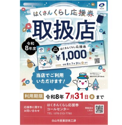 はくさんくらし応援券使えます! ファニチャーエクスプレスではくさんくらし応援券つかえます! 利用期間は4月29日(水・祝)~7月31日(金)までです (4月28日は火曜日のためエクスプレスは定休日のため使えません) ぜひ、ご利用ください。 アーカイブ 2026年4月 (1)